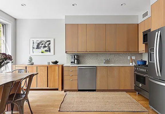 Welcome to 59 Havemeyer- the ultimate Williamsburg townhouse. Offering unparalleled space and style, this modern home offers a quiet retreat right in the heart of Northside Williamsburg. Available for the first time since its original offering, this elegant home has been perfectly outfitted for comfortable living and entertaining. Drive right into your private garage and take the stairs up to the expansive living area where you will find a luxurious gas fireplace, huge windows and skylights which illuminate the space with a unique quality of light. The second and third floors both feature multiple skylights in the rear (in addition to oversized windows)- a stunning architectural element which makes these rooms truly special. The eat in kitchen is a chef's delight- with a Bertazzoni gas range, Bosch dishwasher, extra deep stainless sink and ample counter space- not to mention room for a dining table to comfortably host a party of 10. On the third level you will find two bedrooms, both with en-suite full baths, and a large laundry area. Upstairs on the fourth and fifth level loft is a sumptuous duplex primary suite, with a beautifully landscaped private terrace. The true icing on the cake of this lovely home is the separate suite on the ground level. It's ideal for many uses- such as an office, guest room, or home gym (currently used as an office). In addition to the duplex there is a separate basement with plenty of room for all your storage needs. Ideally located only 2 blocks to the Bedford L train and minutes to McCarren park, as well as countless shopping and dining establishments that make Williamsburg New York's most sought after neighborhood. ** This home is one of 3 condominium units (55-59 Havemeyer Street)- a self managed condominium with exceptionally low HOA fees and taxes! All the benefits of a condominium with the privacy of a single family home.