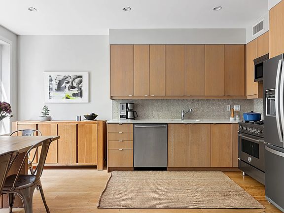 Welcome to 59 Havemeyer- the ultimate Williamsburg townhouse. Offering unparalleled space and style, this modern home offers a quiet retreat right in the heart of Northside Williamsburg. Available for the first time since its original offering, this elegant home has been perfectly outfitted for comfortable living and entertaining. Drive right into your private garage and take the stairs up to the expansive living area where you will find a luxurious gas fireplace, huge windows and skylights which illuminate the space with a unique quality of light. The second and third floors both feature multiple skylights in the rear (in addition to oversized windows)- a stunning architectural element which makes these rooms truly special. The eat in kitchen is a chef's delight- with a Bertazzoni gas range, Bosch dishwasher, extra deep stainless sink and ample counter space- not to mention room for a dining table to comfortably host a party of 10. On the third level you will find two bedrooms, both with en-suite full baths, and a large laundry area. Upstairs on the fourth and fifth level loft is a sumptuous duplex primary suite, with a beautifully landscaped private terrace. The true icing on the cake of this lovely home is the separate suite on the ground level. It's ideal for many uses- such as an office, guest room, or home gym (currently used as an office). In addition to the duplex there is a separate basement with plenty of room for all your storage needs. Ideally located only 2 blocks to the Bedford L train and minutes to McCarren park, as well as countless shopping and dining establishments that make Williamsburg New York's most sought after neighborhood. ** This home is one of 3 condominium units (55-59 Havemeyer Street)- a self managed condominium with exceptionally low HOA fees and taxes! All the benefits of a condominium with the privacy of a single family home.