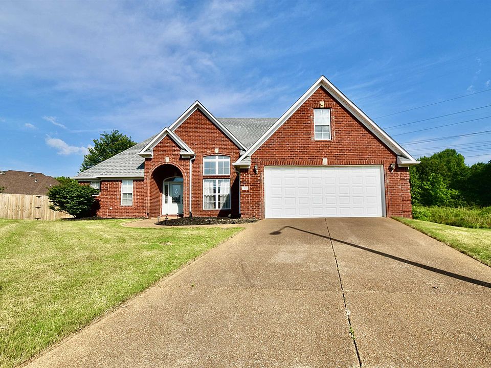 Great home located in Walnut Trace Subdivision with approximately 2056 hsf. Choose from 3 or 4 bedrooms. The main level features a spacious, well thought out split bedroom floor plan. Large primary bedroom and bath with whirlpool tub, raised double vanity and walk in closet. 2 guest bedrooms and full bath. Upstairs is a spacious bonus room that could double as a 4th bedroom and a large, easily accessible walk in attic. Eat in kitchen with solid surface countertops. Open great room and formal dining space with high ceilings. New HVAC upstairs. Roof just 6 years old. Oversized fenced backyard. Home is situated in a cove.