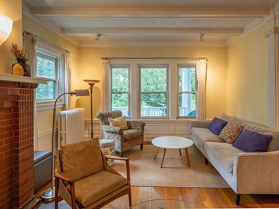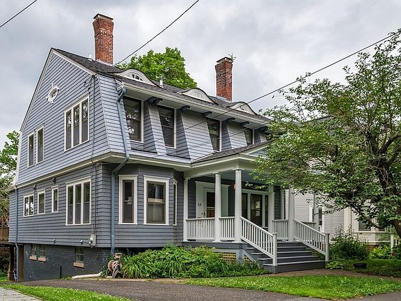 In a prime location just minutes to Smith College and downtown Northampton, this stately house is a treasure from the turn-of-the-century. Combining elements of Craftsman and Colonial styles, of particular note are 2 distinct and museum-quality fireplaces, coffered woodwork, beamed ceilings, stained glass and 2 sun porches. Over 3,000 square feet of space enables generous bedrooms, the primary with its own sunroom, a dedicated walk-in tandem closet (formerly a bedroom), spacious beamed living room, large modern kitchen with attached deck and a lovely fireplaced den with a bow window. 2 full baths on the 2nd floor and a 1/2 bath laundry center on the 1st. Attic with distinctive eyebrow windows complete the picture. Low maintenance yard. Many updates, including mini-splits and newer windows. On the eastern slope of Round Hill, just steps from Smith College and downtown!