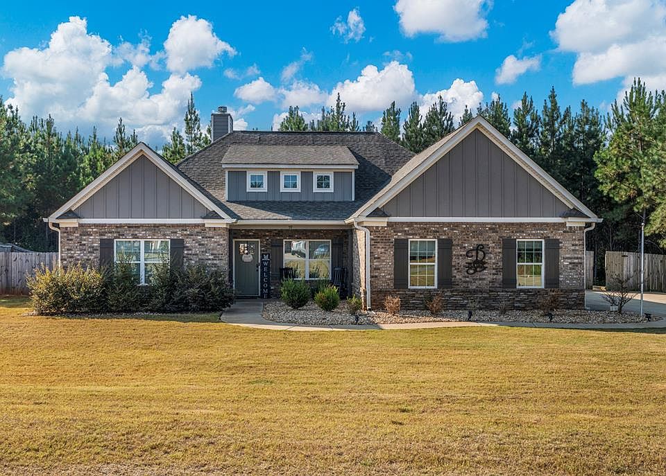 Beautiful 4-Bed, 3-Bath Home on 2.1 Acres in Harris County This stunning 2,308 sq. ft. home sits on 2.1 acres and offers the perfect mix of elegance, comfort, and functionality. Step inside to find a separate dining room with elegant coffered ceilings and a spacious family room with soaring cathedral ceilings and a cozy gas fireplace. The gourmet kitchen features a large island, herringbone backsplash, breakfast area, and overlooks the family room—perfect for entertaining. The split floor plan offers privacy, with the owner's suite showcasing tray ceilings, a spa-like bath with double vanity, tiled shower, separate garden tub, private water closet, and a generous walk-in closet. Three additional bedrooms feature both reach-in and walk-in closets, plus a convenient Jack-and-Jill bathroom. Everyday living is made easy with a smart home panel and a custom owner's entry from the garage, complete with 5 cubbies for storage. Step outside to relax on the 12x16 signature covered gameday porch—featuring a ceiling fan, two surround sound speakers, and a wood-burning fireplace. The private backyard is fully enclosed with a wood fence, offering the perfect retreat. This home has it all—space, style, and privacy—all on a beautiful 2.1-acre lot in Harris County.