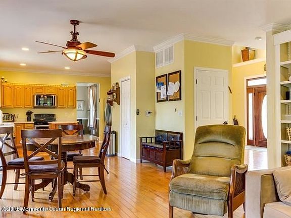Gorgeous Colonial Built in 2006 with finished basement, hardwood floors, dual zone HVAC, spacious kitchen, moldings, bright windows, deck porch, huge bonus room over garage, private location backing to protected land and set back off the road. Close to ferry, bus to NYC.