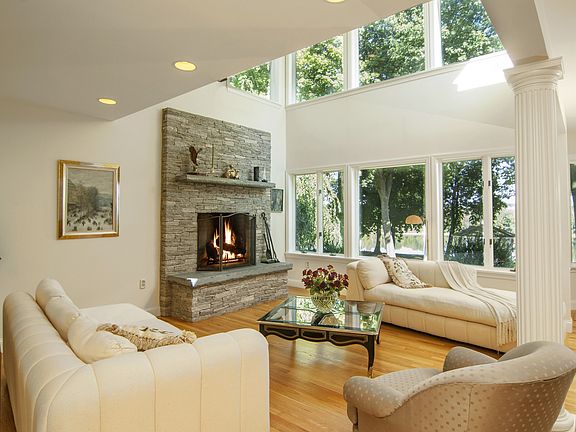 Spectacular CT River views. 165 Ft. Of waterfront with pristine views from this totally rebuilt and expanded home in 2006. 1St and 2nd floor master suites both overlooking the River. Dramatic 2 story living room with floor to ceiling granite fireplace overlooking the River. Granite and stainless fully applianced kitchen. Park like grounds with screened gazebo at waters edge. Attached 2 car and detached oversized garage. Private setting.