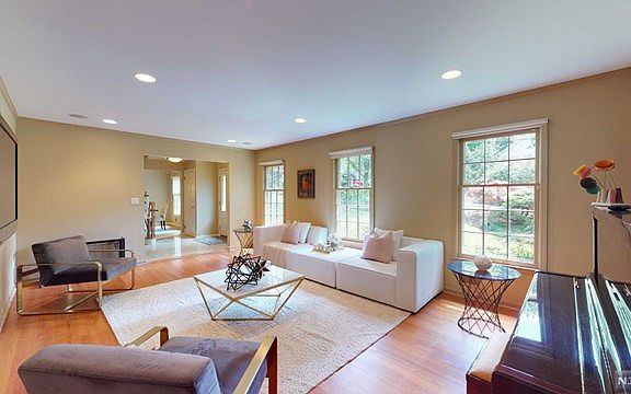 This impeccable center hall colonial fully renovated with 4 bedrooms and 2 1/2 bath nestled in the regal and desirable Cotswald section of Tenafly offers tremendous curb appeal and pride of home ownership. Included in the recent updates are Cedar siding ,3 year old roof, updated electric panel and central A/C. This home has been renovated with a wonderful open floor plan with state of the art gourmet kitchen with granite countertops and stainless steel double ovens, dishwasher and Subzero refrigerator/freezer and breakfast area with sliding glass doors to the newer Trex deck overlooking the beautifully landscaped yard. Family room with fireplace is open to the kitchen. Large living room and dining room ,Powder room and laundry room complete this floor. Large master suite with luxurious master bath and walk in closet,three additional large bedrooms and full bath complete the second level. Full finished basement with recreation room, plenty of storage and two car garage. Please click on the virtual tour for a 3D walkthrough of the home and drone video of the property.
