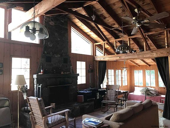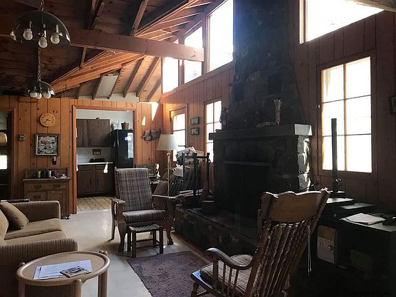 Spacious seasonal camp on Loon Lake with dock! 4 bedroom, 2 full bath, garage. This "camp" boasts high ceilings and lots of glass for natural light and floor to ceiling stone fireplace. House is being sold with adjacent vacant lot with tennis court. Plenty of privacy and room. The primitive box of a cottage was built in 1937; however, it has been extensively remodeled. Garage has a built-in woodshed and workbench. Also for sale are two vacant lots a couple parcels down selling together MLS #182330 for $49,999.