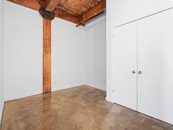 Welcome to Unit 5G at the Pencil Factory. Unit 5A is a top floor 650 sq ft alcove studio with home office loft. The original pencil factory buildings are among the finest examples of NYC loft design. All units feature original timber beam ceilings and structural columns that have been beautifully restored with cast iron casing. Exposed brick walls and original polished concrete floors are just some of the unique treasures that were preserved during this extensive and thoughtful conversion. Ceiling heights from 11-13ft with Massive oversized period specific, Landmark approved windows. Custom oak kitchen cabinetry with stainless steel appliances and black granite countertops. The building offers washer dryer facilities, bike storage room, elevator and garbage/recycling rooms on each floor. *Photos are from similar apartments.