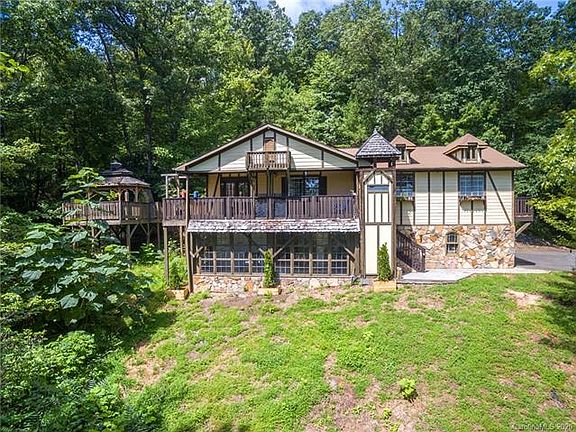 Cozy and beautiful mountain home just east of Asheville in a gated community with waterfalls and more. Bring us an offer.Perfect for a vacation rental or a cozy residence. Move-in ready. 3 spacious bedrooms. Kitchen offers storage and granite counter tops. Main bedroom has a private full bath and large walk-in closet with nice mountain views out the picture window. Lower level with all new wood floors offers a guest bedroom, recreation area with fireplace, 2nd kitchen and handicapped accessible bathroom. Glass sun room on lower level offers a great space for a greenhouse or 3 season porch.Wrap around deck to gazebo and outdoor fireplace. Covered front porch for enjoying the cool mountain breeze and a beautiful sunrise. Garage with plenty of storage shelves along with a covered storage area the length of the house for all your ATV and boating toys. Fenced in dog area off back porch. High speed internet available. Short drive to Waterfall Park and Lake George. Just East of Asheville, NC