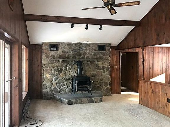 Lakefront! Take a few steps out the front door and you're at the Marina! If your looking to relax , just sit on the back porch and enjoy the lake view or cozy up in the living room next to the woodstove. Extra large rear bedroom gives you plenty of space for visitors. The open kitchen has ample cabinet and counter space for entertaining. Spacious 2 car garage gives you some extra space for storage. Heating and plumbing has been repaired and in working order! This is one house you don't want to miss out on!