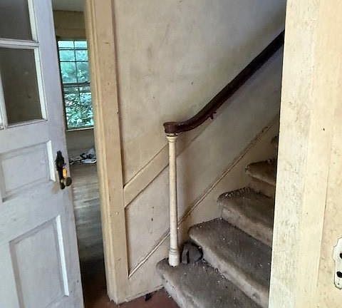 This one's gonna take a good bit of polish to bring back to former glory. 1941 3/1/1 with addition. Active roof leak,likey mold present. Home thought to have good bones other than where framing repairs are needed. Needs everything- new roof, framing repair, electrical, HVAV, plumbing repair, etc. Connected to sewer and water but you'll wanna have those checked out too! Good Bones -Great Lot.