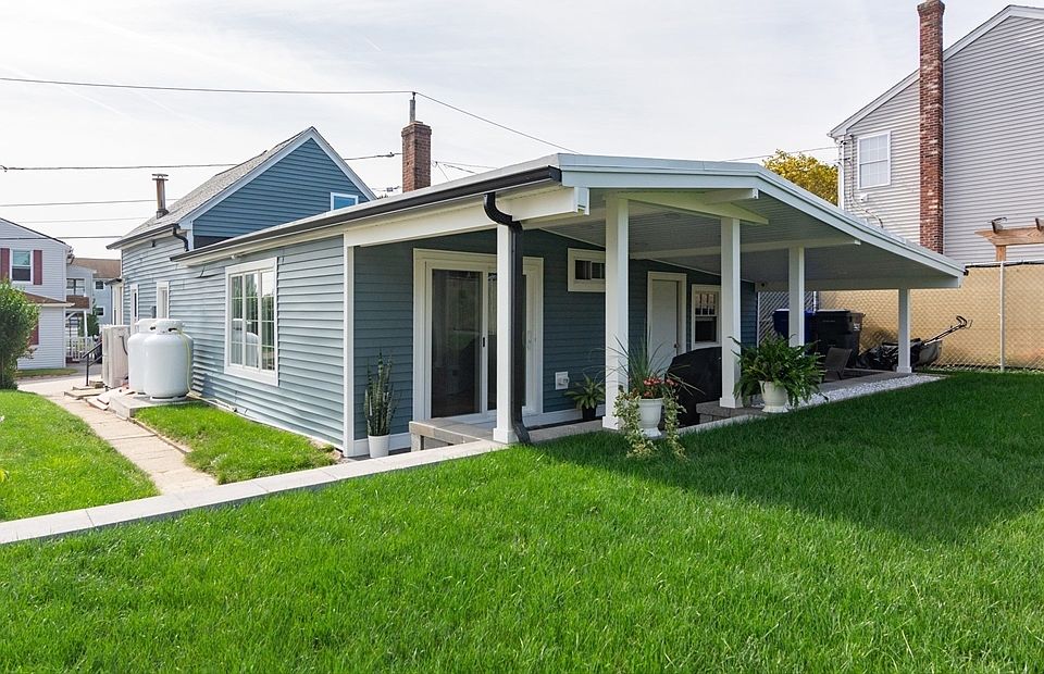 Completely remodeled home with numerous high end finishes on a dead end street. As you enter the house through the rear slider you can't help but notice the upgraded kitchen. A huge 4x8 Island with seating for 8 dominates the kitchen and will absolutely be the focal point for large gatherings. Hardwood floors, updated cabinets and appliances round out the kitchen. Off the kitchen is the main bathroom, with a tiled floor, glass doored rain shower, new toilet and vanity. As you proceed down the hallway there's a bedroom on your left and laundry room on your right. The living room is big enough for a large sectional and has numerous windows full of natural light and hardwood floors. Upstairs are two bedrooms and a huge walk in closet. Off the back of the house is a new 27'x 8' beautiful covered stone patio (recently installed) that overlooks a huge yard with its own irrigation system (well). There's also a single car garage. Everything is done. Just move in.