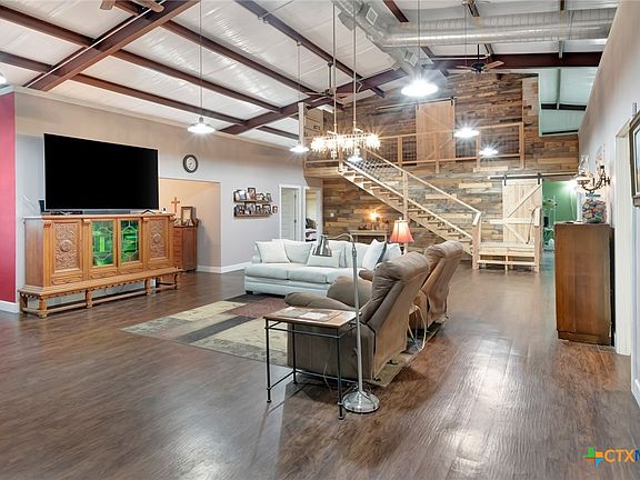 Step inside to discover a spacious open-concept living area with soaring ceilings, exposed beams, and industrial accents like visible ductwork and pendant lighting. The layout combines rustic charm with modern functionality, giving you plenty of room to gather, host, or customize to your lifestyle. Upstairs, the loft provides additional space and overlooks the main living area, adding to the home’s open feel.