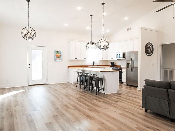 Absolutely adorable 3 bed, 2 bath home, located on a full acre in Lee County! Literally looks like it's never been lived in! Driving up to this home will put a big smile on your face because the curb appeal is FANTASTIC! LVP throughout. Which means NO dirty carpet! Butcher block countertops leave this home feeling warmer than it already is. Higher ceilings in the living areas give this home that look and feel of open and airy. Love the floor plan as well with primary on one side of the home and the other two bedrooms located on the other. Great home, great floor plan!