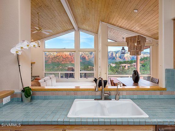 Experience unrivaled views as you step inside this enchanting home, boasting panoramic vistas of Sedona's iconic red rocks. Meticulously maintained and thoughtfully upgraded (see details below), this property sits on a prime, elevated lot within the sought-after gated community of Les Springs. It presents a unique opportunity to shape a home that reflects your personal style and spirit.