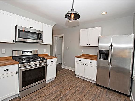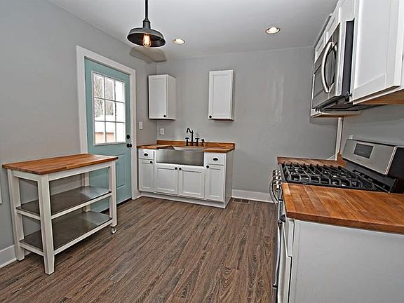 A wonderfully renovated home with a large living room, formal dining room, large kitchen, main bedroom and full bath all on the first floor! The kitchen is gorgeous!! It has a farmhouse kitchen sink and butcher block countertops. Fantastic, stainless-steel appliances are included! The home has a covered front porch but you will probably spend all of your outdoor time on the back deck or in the massive backyard! Upstairs there are two large, captive rooms. One could be a bedroom and one a home office, or upstairs den. Would also be perfect if you needed two shared bedrooms!