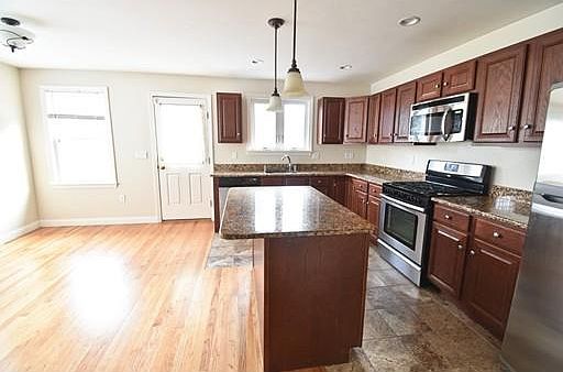 Stunning pet friendly townhouse in prime Watertown location! Enter into a spacious open living room with a fireplace and dining room area with that leads into a large eat-in kitchen. Kitchen boasts a granite island stainless steel appliances, dishwasher and disposal, as well as a big pantry closet. From the kitchen you have a door leading to a huge private deck. A half bath and oversized coat closet round out the first floor. Upstairs you'll find a huge master bedroom with master bath, two additional big bedrooms, as well as a guest bathroom with a bathtub. All the rooms come with ample closet space and hardwood floors throughout. Additional amenities include central AC, attached 1 car garage that leads into your basement plus a driveway, laundry in-unit, and a massive basement for storage. Natural light fills all the rooms and the side-by-side configuration of this 2-unit building means nobody lives above or beneath you.