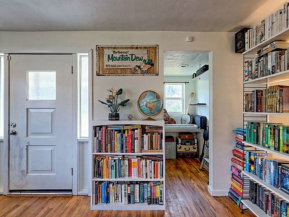 Charming Murphy 2BR/2BA Bungalow within walking distance to the Hiwassee River! This well-maintained home is perfect for low-maintenance living, with newer systems in place. Step inside to discover a den featuring original hardwood floors in excellent condition, along with a small computer/work alcove.  The updated dine-in kitchen boasts plenty of cabinet space with white cabinets, beautiful granite countertops, stainless steel appliances, and a stainless farmhouse sink, all complemented by newer fixtures and lighting.  The split-bedroom design ensures privacy between the generously sized bedrooms. The primary bedroom includes a dual vanity bath, a tile shower, and a spacious walk-in closet—an impressive addition for a home of this age. The secondary bedroom is filled with natural light and is conveniently located near the secondary bathroom. Both bathrooms have been updated with newer vanities, lighting, and flooring.  The laundry room offers ample extra storage space. Outside, you'll find a covered patio area that's perfect for relaxing or entertaining, as well as a large storage building and a spacious fenced yard where your fur babies can play safely. Quiet neighbors of the USFS Center, which features meticulously maintained grounds beautified with trees. A short walk down the street takes you to the scenic Hiwassee River, to enjoy walking trails and the serene sounds of the water. Unbeatable location near charming downtown Murphy!