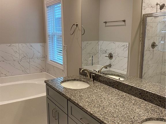 Introducing The Drake Plan - a beautifully designed 3 bedroom, 2.5 bath home. This stunning new construction boasts 1842 square feet of living space, making it the perfect size for families or those who love to entertain. This home includes, Custom built cabinets throughout, granite countertops throughout, stainless appliances which includes a range, vented microwave over range, dishwasher, & refrigerator. Carpet and luxury vinyl plank flooring, adding a touch of comfort and style to the home. Tile in bathrooms and laundry, for easy maintenance and durability. Open-concept living and dining area, perfect for gathering with loved ones. 2" wood blinds throughout. Covered front porch, providing the perfect spot for relaxing or entertaining guests. Professionally landscaped, sodded & irrigated yard. Schedule a showing today and see for yourself all that Ellington Farms Subdivision has to offer.