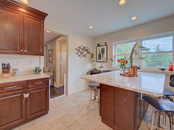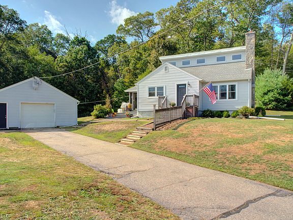 Step into this beautifully updated Contemporary Cape Cod, where timeless charm meets modern convenience. Featuring 2 bedrooms and 2 full bathrooms, this thoughtfully renovated home is truly move-in ready. The inviting kitchen features modern appliances, ample cabinetry, recessed lighting, and a center island with eat-in space-combining function and style in the heart of the home. Unwind in the cozy living room, complete with a stunning granite stone fireplace, perfect for chilly evenings. A versatile first floor room offers flexible use as an office, third bedroom, media room, guest suite, or family space-tailored to fit your lifestyle. Retreat to the private upper-level suite featuring transom windows, built-ins, dual sinks, a soaking tub, separate modern shower, and generous closet space. Enjoy the backyard covered deck, ideal for morning coffee or evening gatherings. The impressive detached 4-bay garage and workshop offers 1,344 sq ft of space for vehicles, hobbies, storage, or serious tinkering. Whether you're looking for your first home, downsizing, or simply seeking a low-maintenance lifestyle, this property delivers elegance, efficiency, and character in every detail. All just minutes from shops, restaurants, scenic hiking trails, and major commuter routes.