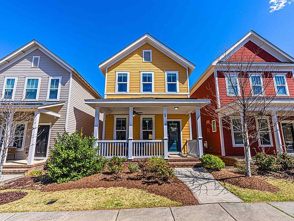 With its striking yellow exterior, this is a bold opportunity in the coveted Briar Chapel community! The Strowd plan built by Saussy Burbank is known for its open concept main level with great flow between Kitchen, Dining, and Family rooms. First floor highlights include a kitchen island, quartz countertops, gas fireplace, hardwood floors, and an office nook with built-in desk and cabinetry. Upstairs, the spacious Primary Bedroom has dual vanity, tub/shower combo, and a large walk-in closet. There are 2 Secondary Bedrooms which have convenient access to a hall bath. Plenty of outdoor living space with a covered front porch and a screened porch to enjoy the fenced backyard. Detached 2 car garage and additional storage room offer excellent storage flexibility. Top notch community amenities include resort-style pools with splash pad, multiple parks, playgrounds, walking trails, sport courts (basketball/volleyball/tennis/pickleball), fitness center, and more - there's a reason why Briar Chapel continues to be voted as the "Best Neighborhood" in Chapel Hill! *Video Tour: https://bit.ly/59MallardLanding