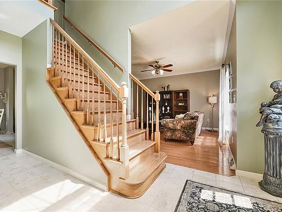 This custom built spacious home is nestled on a quiet cul-de-sac. Move right in! Every inch of this home has been updated and renovated! This home was built and lovingly maintained by the original owner for the past 21 years! You will love entertaining, with the spacious eat in kitchen open to the formal dining room, and family room leading to a massive, private backyard oasis! The wooded backyard surrounded by trees includes an omni stone patio, multilevel deck, above ground pool with multiple seating areas and a beautiful custom designed pond with waterfall. Plus a tiered flat upper level yard space perfect for a swing set or fire pit! All three bedrooms plus a bonus room are located on the second floor, including the Master Suite with vaulted ceilings & walk in closet! The bonus room could easily be converted into a fourth bedroom. Large clean unfinished basement and oversized 2 car attached garage provide tons of storage. Home warranty included to give buyers peace of mind.