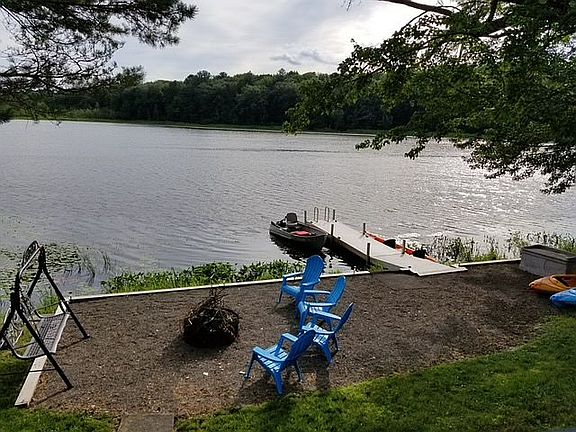 A rare opportunity to find a beautiful home on a pristine private lake with no HOA fees! Bassett Lake is non-motor boat so its very peaceful - a great place for swimming, fishing, kayaking and relaxing with family. This remodeled home is insulated and heated with an economical inverter split (for both heat and AC) and additional electric baseboard heat for year-round use. The home has an open floorplan design to enjoy the lakeview. The home's character is accentuated by a wood ceiling throughout and a two-story brick fireplace with a pellet stove insert. The home has one bedroom on the first floor and a second floor loft which is great for bunk beds! It has a newer metal roof (guaranteed for 40 years), new vinyl windows and a sliding door to the large composite deck to enjoy gathering with friends and just watching the water. Home has its own well (along with a new water heater) and septic. A gravel patio by the lake is great for campfires under the stars. Sit on your own dock and take in the scenery of countless birds including bald eagles. Homeowner is only selling because we are building a new house next door. This lake only has a few homes on one side so you don't see any other houses across the lake, just pure nature at its best. Email for more info or to schedule a private showing (all showings by appointment only).