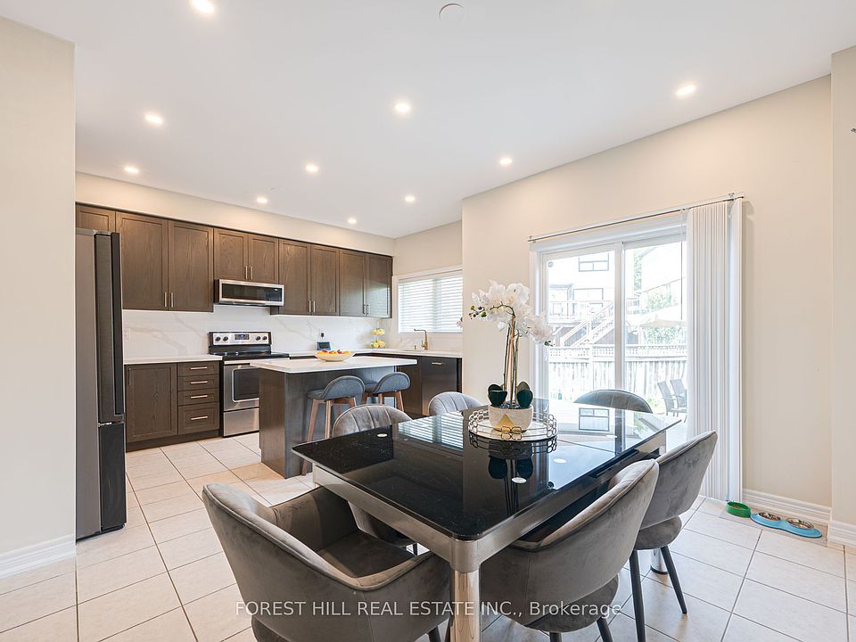 Beautiful END-UNIT townhome on an OVERSIZED PIE-SHAPED LOT with rare 4-car parking (3-car driveway + 1-car garage). This charming UPGRADED home features 3 + 1 spacious bedrooms, 4 bathrooms, and 9-ft ceilings on the main floor. Enjoy stylish laminate flooring and pot lights throughout. Spacious modern kitchen features large Central Island with Breakfast Bar and is equipped with QUARTZ countertops and backsplash, newer stainless steel appliances, and ample cabinetry. A large powder room with quartz vanity and upgraded sink adds charm to the main level. PROFESSIONALLY FINISHED BASEMENT (2024) offers a stunning suite with a SEPARATE ENTRANCE through garage ** Income Potential **. It includes a 4th Bedroom, comfortable Office space, 3-pc Ensuite with HEATED FLOORS and Towel Bar, pot lights, hardwood floors, and upgraded doors. Located in an excellent commuter location with quick access to Highway 400 and the Bradford GO Station. Enjoy the convenience of being within walking distance of Catholic and public elementary and high schools, parks, shopping, the library, and the BWG Leisure Centre. A truly beautiful home with thoughtful upgrades through-out - move in and enjoy! ** All Existing Furniture in the house can be part of the purchase **