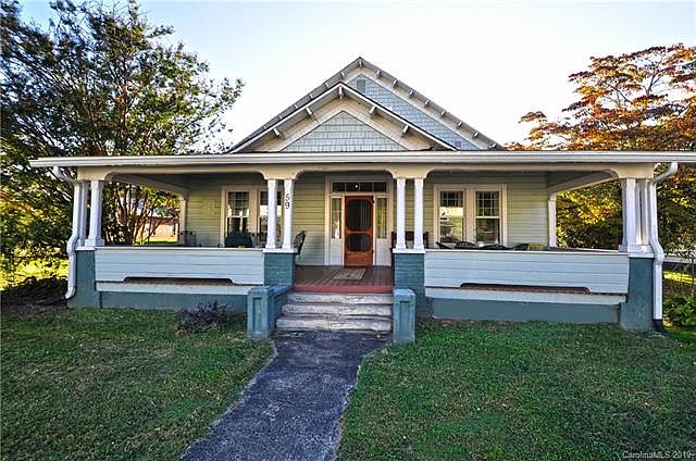 Classic Historic bungalow built in the early 1900's in quiet neighborhood in downtown Hot Springs. Quality German craftsmanship. 9 foot ceilings. 4 original fireplaces. Parlor has artistic Chestnut mantle and woodwork. Beautiful wood floors in great condition. 4 Spacious and light bedrooms. Second floor is finished but not included in heated sq.ft., there are two bedrooms upstairs. Large rooms, great kitchen and spacious covered front and back porches. German style wood lap siding with wood shingle gables. Large, sunny lot. Walking distance to restaurants, shops, Appalachian Trail, National Forest, French Broad River and more!