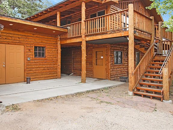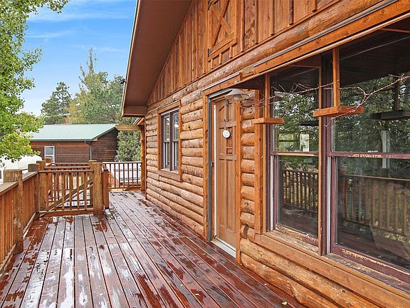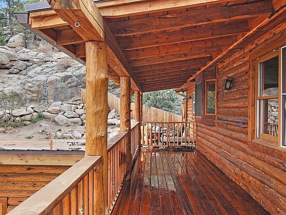 This log-sided home exudes a warm rustic atmosphere that makes you feel at home in the mountains. Enjoy the outdoor spaces including a huge wraparound deck, beautiful rock outcroppings, fire-pit, and views of Hermit Park. Inside, cozy up to the wood-burning fireplace in the huge living room or escape to the master suite with a jacuzzi. Recently remodeled bathrooms, new roof, boiler, hot water heater, and well pump. Downstairs is a large bedroom with private bath.