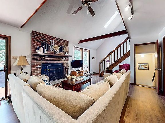 2.5 story home with 5 bedrooms and 3 baths. The home has a large front deck a family room on the lower level, a living room on the main level and a loft on the upper level.