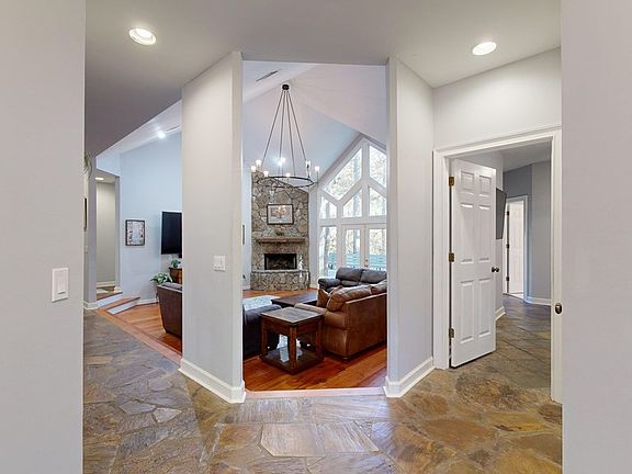 This stunning custom home is conveniently located in Harris County in prestigious Coca Lake subdivision. It features elegant stone and heart pine wood flooring throughout. The open floor plan includes a spacious great room that leads to a 900 sq ft deck, perfect for entertaining. The updated kitchen boasts granite countertops, newly refinished cabinetry, a JennAir gas cooktop, and stainless steel appliances. The home is filled with beautiful large windows and specialty ceilings that add character and charm. The expansive master bedroom includes a cozy fireplace, direct access to the deck, and a spacious bathroom with a separate shower and jacuzzi tub. Located on a 2.47 acre lot with a fenced backyard and plenty of privacy! Enjoy the neighborhood amenities which include a pool, clubhouse, playground, stocked lake for fishing, and tennis courts.