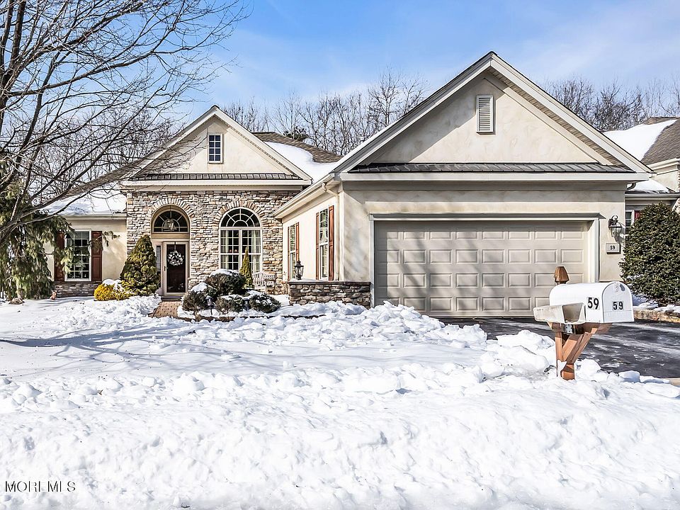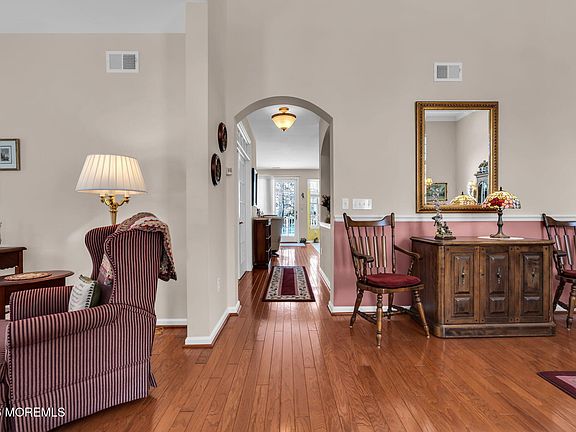 Meticulously maintained, upgraded & cared for by original owners, this Hatteras model checks all the boxes! 2 BRs + office (or potential 3rd BR) & 2 full baths (primary has jetted tub, shower, & 2 vanities), this bright & airy home is across the street from woods & backs to more trees. Enjoy privacy on the 12x26 composite deck w/retractable awning + sunblock dropdown & nat gas line to grill. 8 ft Andersen slider, multiple transoms & 2 bay windows provide an abundance of light throughout. Amenities include gleaming HW plank floors, top down bottom up shades & gas FP w/blower. Kitchen offers walk-in pantry, recessed & UC lighting, granite CT, lg cabs w/pull-outs. Newer roof w/warranty, new insulated doors in ext.garage, allergy-friendly & energy efficient features (see list under docs tab).