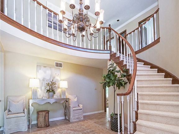 Situated in the exclusive guard gated community of “The Ranch” in Rolling Hills Estates, this beautiful home offers 4,260 square feet of living space with 5 large bedrooms, 4 bathrooms, and sits on an expansive 18,792 sq foot lot. Formal living and dining rooms along with a recently remodeled gorgeous chef’s kitchen with large island, crema Bordeaux granite from Brazil and unique backsplash opens to a large family/great room with fireplace overlooking the beautiful and lush backyard with covered patio and large grass play area for kids or pets. Upstairs you will find 4 generously sized bedrooms in addition to an 800 square foot bonus room with endless possibilities. The primary bedroom offers two huge custom-built walk-in closets, a large primary bathroom with double sinks and separate tub and shower and, on a clear day, ocean and Catalina views from the upper west facing windows. Downstairs there is an additional 5th bedroom with ensuite bath and laundry room off the 3-car garage. This conventional 2-story home is just waiting for its next family to make it their own.