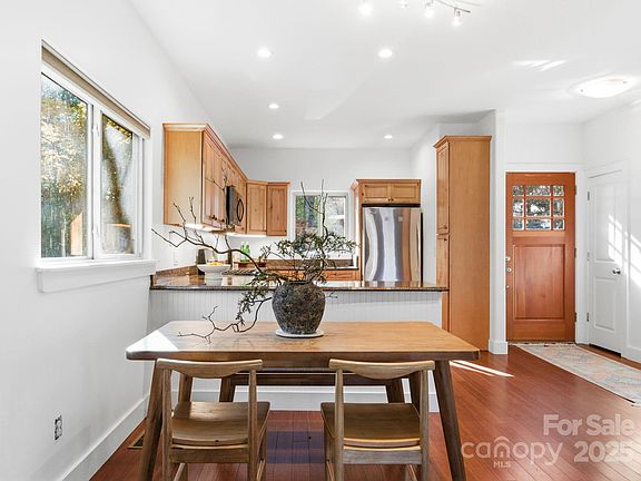 Step into this updated West Asheville treehouse! Walkable to Haywood Road, Hominy Creek Greenway, and West Asheville Park, this 2009 4BD.3.5BA home resides in popular Morningside Park. Cozy up to the living room’s slate tile fireplace while enjoying the main level open floor plan. Large windows and 10’ ceilings also make this home light and bright. With arts and crafts elements, you’ll appreciate the slate tile, exterior cedar shake, living room built-ins, and lower level stone patio. Bamboo flooring anchors the main and upper levels, while engineered wood finishes out the lower level. You’ll appreciate separate sleeping options with 3BD on the upper and 1BD on the lower level. Lower level would also make a great homestay with exterior access, full bath, bonus room (great for a walk in closet!) and laundry access. Please note the laundry access is through this lower level room. You’ll love all the outdoor living areas with a front porch, 2 back decks, and a lower level stone patio. Recent updates include new gutters, new interior paint, freshly painted decks, and updated landscaping.