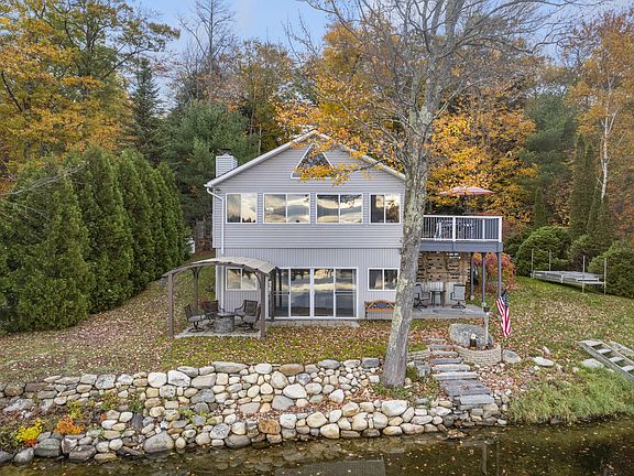 This charming, recently updated home features 5 inviting rooms, including 2 cozy bedrooms and 2 baths, and generator ensuring comfort and relaxation. The heart of the home is a family room adorned with a striking stone fireplace and a woodstove, creating a warm and inviting atmosphere. The open floor plan design allows you to seamlessly soak in the serene beauty of the water and the enchanting calls of the loons as they glide across the lake.