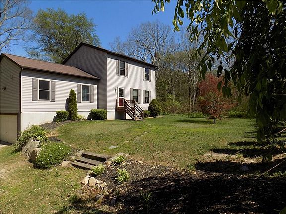 Lovely three bedroom colonial on 11 acres in the beautiful peaceful town of Foster! Move right in to this cozy home surrounded by woods and trails for exploring but with plenty of yard for those outdoor gatherings. There is a large lodge style family/great room on the first floor with a wood stove for added warmth and atmosphere. This home includes a gorgeous bamboo floor in the living room, a whole house filtration system, a wrap around deck, a garage, sheds, and more. A relaxing commute to 295 or 395! Great schools! Fishing nearby!