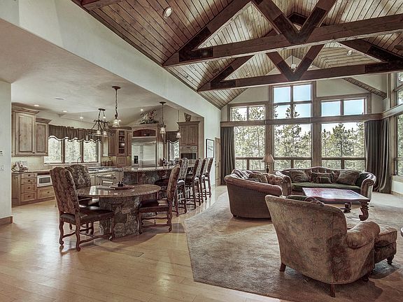 Beautifully situated on a great open lot at Keystone Ranch, this home is made for family and entertaining. Main level open living floor plan with large deck surrounded by great views and mature trees. Two luxurious master suites, one on main level. Don't miss the secret door into a private office with wet bar. Spacious bedrooms throughout the home provide privacy for many. Exit lower level great room/bar area to patio leading to private hot tub. Community pool, tennis courts, golf specials.