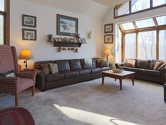 Here is a ski home that is tucked in the woods with lots of large windows which allow for an abundance of natural light and a beautiful, filtered, long range view. It is located very close to Okemo's main base lodge area with shuttle access to the slopes on weekends and holiday weeks. This home has quality construction and a wonderful open floor plan allowing for gatherings at meal times or being fireside for a game of cards after dinner. The private master suite is located on the top level with private master bath and ample room for a home office area or lounge. The remaining three bedrooms are on the ground level and share a full bath with double vanity. You will especially appreciate the ski room entry with a generous amount of room for winter gear, and including a half bath. A great ski home with a setting to be enjoyed year-round.
