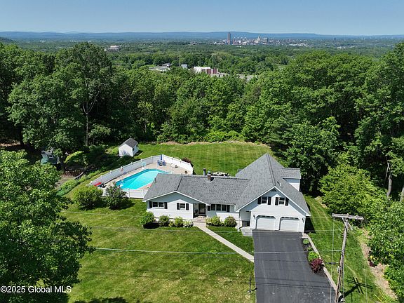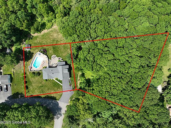 Perfect blend of privacy & convenience! 4 BR, 2 BA home on 1.13 acres in a great N Greenbush location in E Greenbush Schools. Expansive lawns, 2-tier paver patio, beautiful landscaping, heated in-ground pool & screen porch. Sale includes .74 ac wooded lot to right of home. Classic mid-century oak wood floors, tastefully modernized kitchen w/ Wellborn cabinets & quartz counters and both baths w/ quality finishes. 2nd flr primary BR w/ HW floors, 2 walk-in closets & new full BA. Wood stove in LR, zoned hot water heat & central A/C all just serviced, heated 2 car gar. Roof & driveway 2018, top quality Renewal by Andersen windows 2023, full bsmt w/ Bilco door plus egress window, public water plus supplemental well. Freshly painted! Updates inside & out- full list in docs. Agent is seller