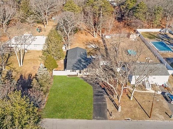 Major upgrades include new 200-amp electrical service, new roof, new water heater, new interconnected smoke detector system, new central heating and cooling system, and recently cleared cesspool lines. Energy Star rated and NYSERDA qualified. New washer and dryer installed. It includes a clean, full size unfinished basement with a separate outside entrance. Set on a massive nearly 1-acre lot with a concrete patio. Located near shopping centers, schools and golf courses.