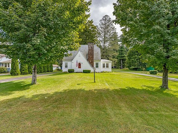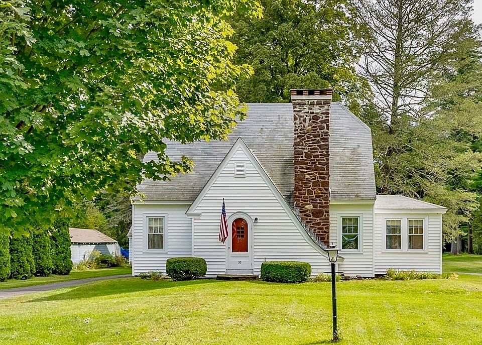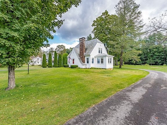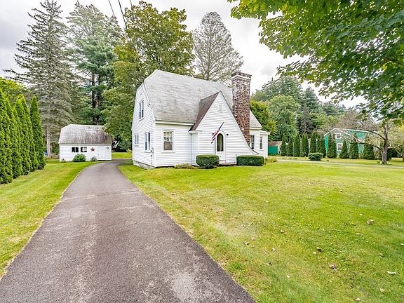 The cutest house on the street and a park-like backyard! This special Cape-style home has been well-maintained by one family for over 60 years. Located on a dead-end street, in a sweet neighborhood, its curb appeal is unmatched. The circular driveway leads to 1.27 flat acres of beautiful grass, mature trees, garden area, and sweet berry bushes. When you walk through the arched front door, you'll feel right at home w/ large airy living and dining rooms, hardwood floors, French doors, and fireplace with wood stove insert. A sweet kitchen with built-in breakfast nook and lots of counter space, a large bedroom, half-bath, and a cozy sunroom, complete the first floor. Upstairs, you'll find two more spacious bedrooms, lots of storge and built-ins, and a full bath. The partially finished basement can provide extra living space and has a workshop. A walk-up attic, large 2-bay garage, vinyl windows, mini-split system, and newer boiler, are just some of the extras you’ll find in this sweet home.