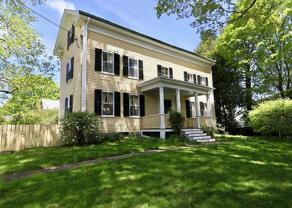 Federal style farmhouse on large lot. Near to parks, public transportation, Charles River and easy access to the Mass. Pike. This house contains many period details such as wide pine floors and decorative fireplaces. The first floor has kitchen, a half bath, two study areas (one serves as laundry room) a living room, and separate formal dining room. The master bedroom with en suite bath is on the second floor. There are two additional rooms on this floor and a full bathroom in the hall. The third floor has two additional rooms which can be used as bedrooms, a play space, or a study/office. Great outdoor space with a covered porch and large backyard. Two attached garage spaces plus additional shed/storage room adjacent to garage. Square footage does not include large, partially finished basement.