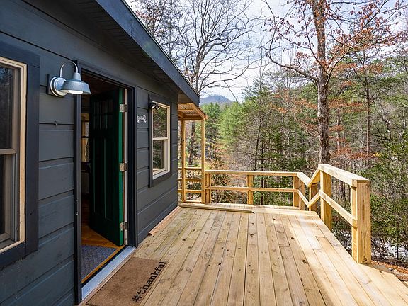 This stunning property is a must-see for anyone who loves rustic charm and modern luxury. As soon as you step inside, you'll be struck by the incredible attention to detail that has gone into every inch of this house. The highlight of this property is the wraparound deck, ideal for relaxing with a cup of coffee in the morning or enjoying a glass of wine in the evening while taking in the mountain air. Inside the house, you'll find heart pine floors and live edge wood accents throughout, giving the space a warm and welcoming feel. The custom cabinetry in the kitchen is perfect for anyone who loves to cook, and the island provides ample space for meal prep and entertaining. And don't miss the antler chandelier, which adds a touch of whimsy and rustic charm to the space. Fully renovated by a master craftsman, every detail has been thoughtfully considered. And with so much character and charm, this is truly a one-of-a-kind home that you'll love for years to come.