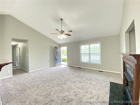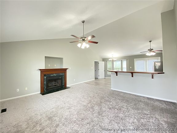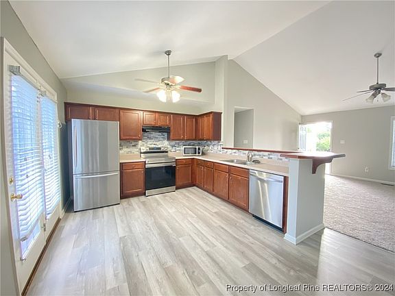 Welcome to this charming 3-bedroom + bonus room ranch-style home in the sought-after Sunset Ridge community of Harnett County. The home features a spacious great room with vaulted ceilings and an eat-in kitchen with wood cabinetry, stainless steel appliances, and a breakfast bar. The master suite boasts a walk-in closet, garden tub, dual sinks, and a separate shower. A finished bonus room offers flexible space for an office, playroom, or guest room.