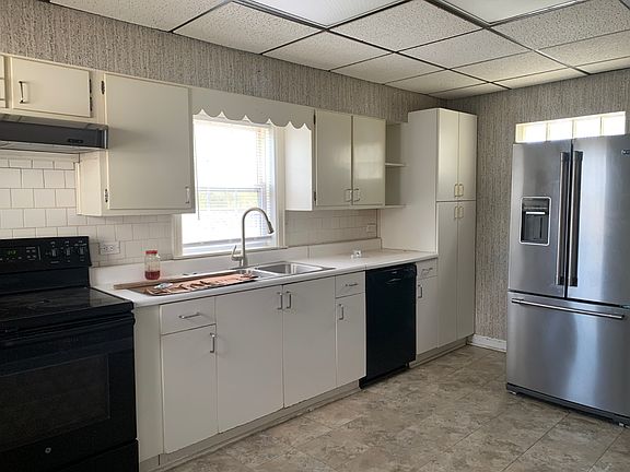 Plenty of room here! Beautiful parquet hardwood floors and decorative doors with stained glass inlays. The large master Suite has his/hers closets, a lounge or dressing room, full bath with double sinks and bidet. The second bedroom is 10x12 and convenient to the hallway full bath. The kitchen has a pantry and plenty of storage space and light. The 4 garages are separated by concrete walls, and 3 have concrete floors. The utility room provides extra storage space too. All city utilities and conveniently located just off Main Street.