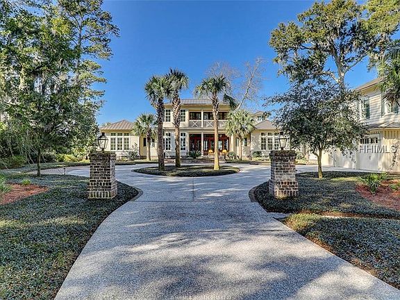 Deepwater Dream Home w/ dock on Colleton River! Meticulous 5700 sqft home w/ every detail & luxurious upgrade one could desire combined w/ tranquil waterfront setting. Set on over an acre & greeted by Savannah gray brick entry, the driveway winds through a canopy of oak trees w/ a beautiful master suite, 2 offices, Chef's Kitchen w/ spacious keeping room & fireplace, butler's pantry, & custom wine room. Amazing home for entertaining whether in the spacious living & dining area, Carolina Room, or outside by the firepit. There are 2 guest suites upstairs & an inviting carriage house apt over the 3 car/one cart garage.