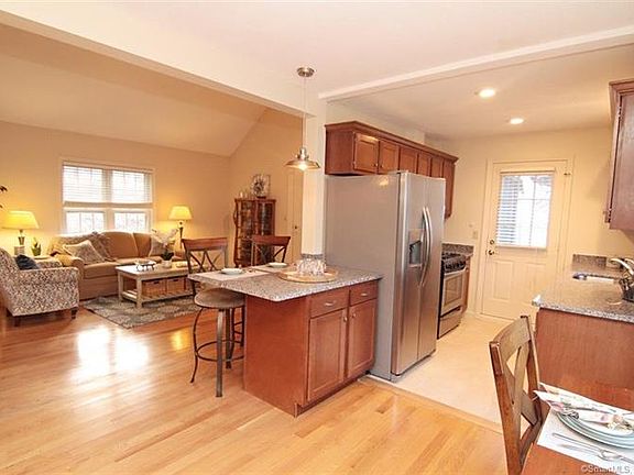6 room, 2 bedroom, 2 full bath Ranch style unit at Old Towne Condominiums. Move right into this beautifully renovated home featuring hardwood floors throughout. Open concept living space with cathedral ceilings, a fireplace, and a sunny 3 season porch. The fully remodeled kitchen is equipped with brand new cabinets, granite countertops, stainless steel appliances and a built in breakfast bar. The spacious master bedroom features large closets and updated ensuite with walk in shower. A second bedroom and an additional updated bathroom complete with main living floor. There is a basement with handicap access for additional living space, a laundry room and a large crawl space for storage . 1 car attached garage has 3 large closets for additional storage. Enjoy maintenance free living in your own community boasting a swimming pool, tennis courts, and beautifully landscaped surroundings. Located within walking distance to the center of town, this home is zoned for Highland elementary, Dodd Middle School, and Cheshire High School. This property will not last long !