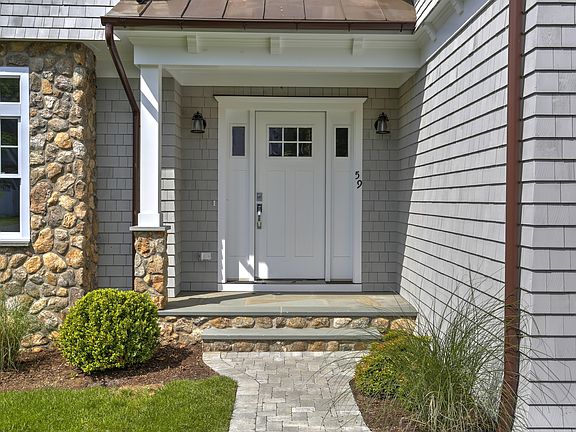 Striking, Open Plan Colonial - Cedar & Stone from Kardamis Construction. 5 BR, 4 Full Ba Large, White on White Gourmet Kitchen w Center Island, Honed Marble Counters, Dark Hardwood Floors, Thermador Appl. & Sleek Glass Backsplash. Big Bright Family Rm w Gas Fireplace, French Doors to big Level Fenced in Back Yard. Formal Dining Rm w 9 Coffered Ceiling, Bay Window & Shaker Paneled Walls. Master Suite w Huge W-In Closet ($3500 credit to buyer for custom fit out) Master Bath in White Marble, Free Standing Tub & Large Glass Shower. Mudroom w Shiplap Walls- Custom Built Ins. 9 Ceilings, Dark HW Floors, Recessed Lighting, Chrome Emtek Hardware, Anderson Windows, Fine Paneling/Crown Molding Throughout. Desirable Southport/Prized Mill Hill School