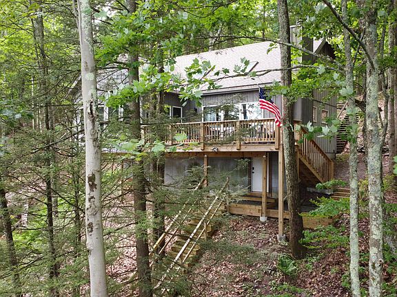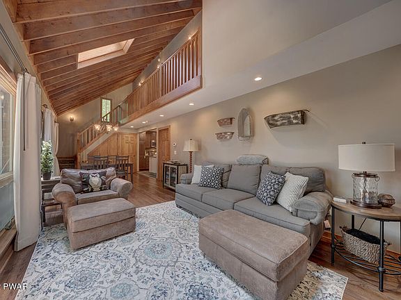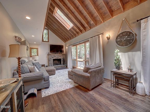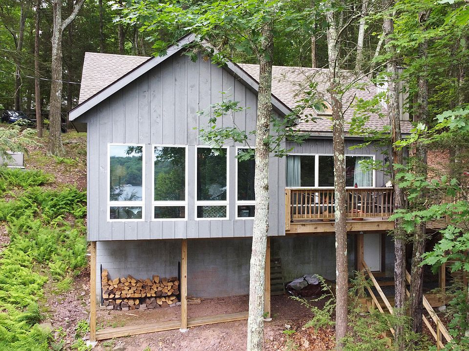 Lake Wallenpaupack Lakefront - perfectly updated & private setting! Home offers a beautifully updated kitchen with island, dining area and living room w/ stone fireplace, main level master suite with beautiful bath, incredible sunroom that looks out over your lake frontage, lakeside deck, whole-house generator, paved driveway and more! 3 bedrooms, 2 1/2 baths, partially finished basement and just steps to your dock on Lake Wallenpaupack!, Beds Description: Primary1st, Baths: 1 Bath Level 1, Baths: 1 Bath Level 2, Baths: 1/2 Bath Lev L, Eating Area: Dining Area, Beds Description: 2+BED 2nd