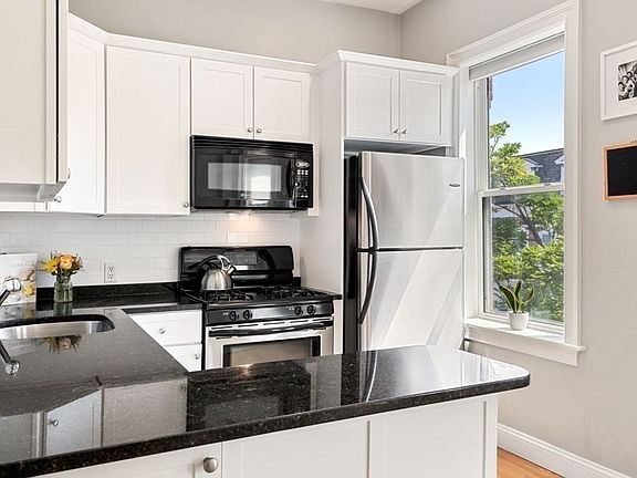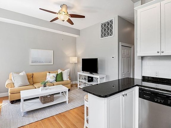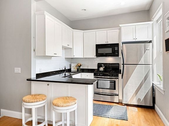 Welcome to 59 P Street! The City Point location, known to be the best place to live in South Boston! This sunny, perfectly laid out one bedroom lives much larger than the square feet would dictate. Recently updated kitchen with granite counters, stainless steel appliances, island and custom backsplash that open to a sun filled living room, with great ceiling height and hardwood floors. Two brand new custom closets right outside beautiful french doors that lead to a generous sized bedroom. When it's time to relax, enjoy time on a quaint, private deck. Additional features include A/C, in-unit laundry and designated storage in the basement. Steps away from Castle Island, major bus routes, Seaport and all Broadway has to offer.