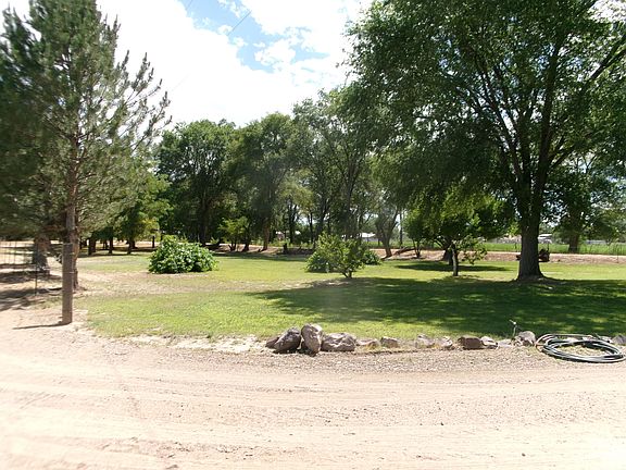 Beautifully landscaped! Park like setting with plum trees, apple tree, peach trees, pine trees, grapevines and grass. Mobile home needs TLC and is being sold as ''AS IS'' seller will not make any repairs and it is not on a permanent foundation. Inspections are for buyers information only. Approximately 1.8 of 3.67 acres is laser leveled and had alfalfa planted at one time. Property has access to MRGCD (lease) pre 1907 water rights have been severed. There is electricity, domestic well, irrigation well, septic and Propane ( propane tank has been removed)